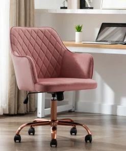Cheap ๐ฏ Duhome Elegant Lifestyle Mid-Century Diamond Quilted Desk Chair, Pink With Gold Base ๐