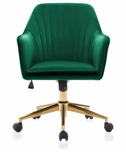 Deals ๐ Belleze Modern Home Office Chair 360 Swivel, Tufted Velvet Desk Chair, Green/Gold ๐