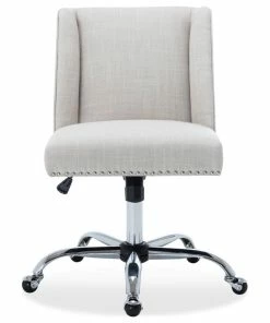 Outlet ๐ Belleze Upholstered Fabric Office Chair Nailhead Trim Swivel Task Chair, White ๐