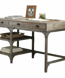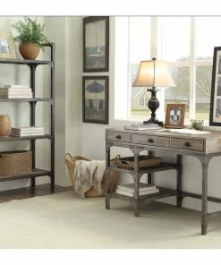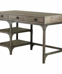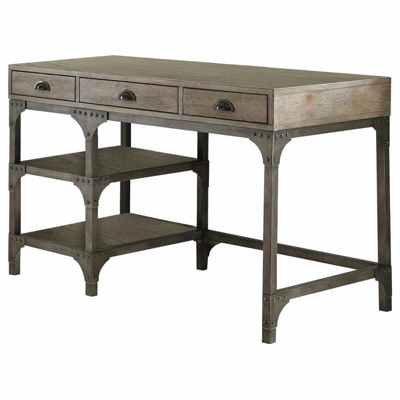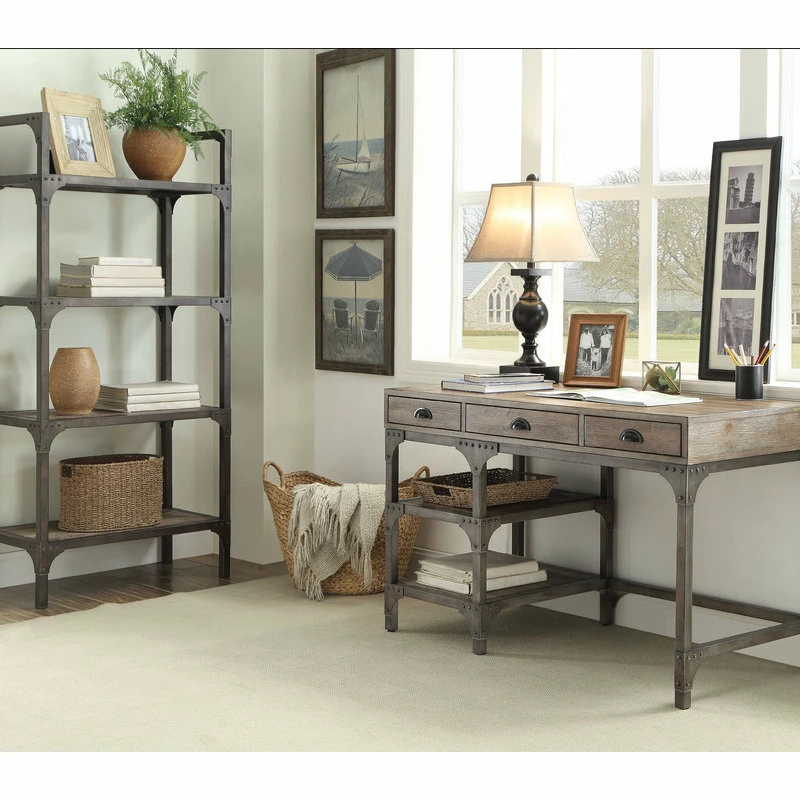 Revolutionize your design with the hardworking appeal of the Gorden Desk. This piece is forged from metal and select wood and veneers for a sturdy construction that is up to the task of being your go-to spot for sketching, planning, writing and more. The Gorden features weathered oak and antique silver finishes and corner brackets with exposed rivets for a look that is decidedly utilitarian. Employ this desk in your urban space for a cohesive design.
