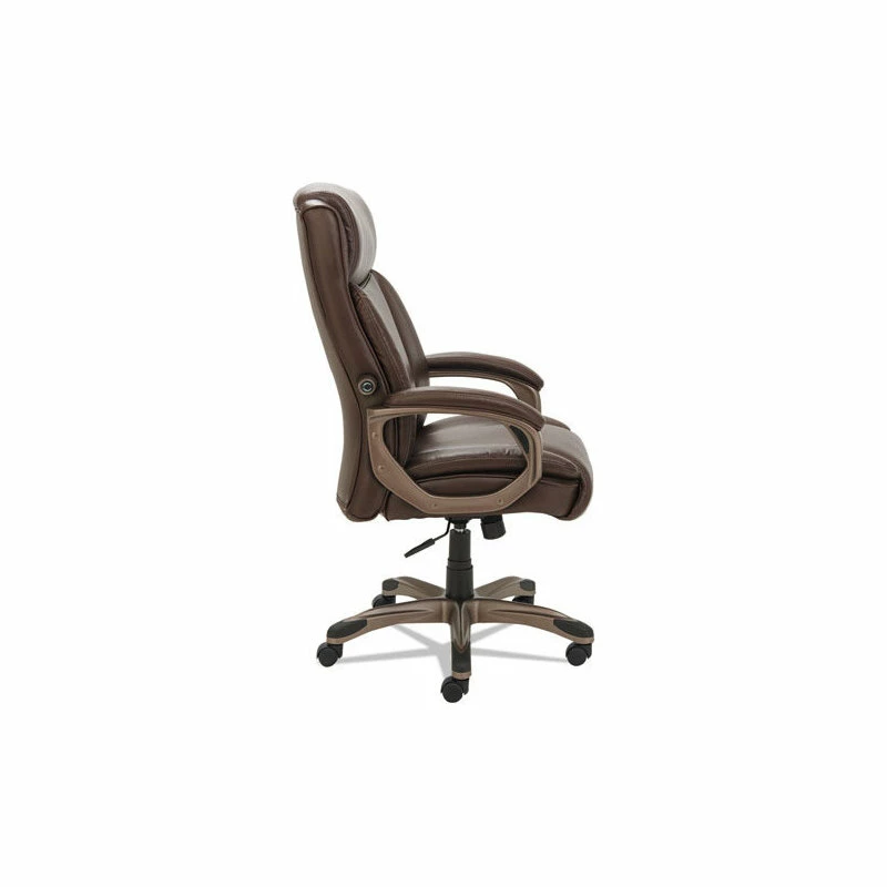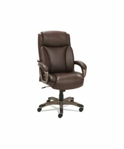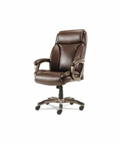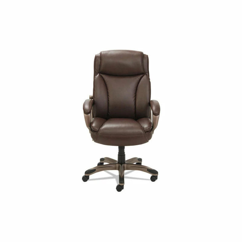 Coil spring cushioned seat provides long-lasting, mattress-like comfort. Ergonomic side bolsters for added support. Adjustable lumbar support for optimal back positioning. Integrated cushioned leather headrest and padded leather armrests. Five-star base with protective foot zones. Generously cushioned waterfall seat reduces pressure points at the back of the knee.