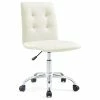 The Armen Living Bowie mid-century office chair is a beautifully upholstered caster piece that is both stylish and comfortable. The Bowie has a gas lift mechanism which allows the user to adjust the height of the chair to better suit their seating preferences. This brilliant office chair is made of a sturdy plywood seat frame, stylish chrome metal base, and expertly upholstered faux leather seat. The simplistic chair design allows the item to blend into any style home seamlessly. This chair is ideal for any office space in everyday home or commercial setting. The medium high fluid cushion back is ideal for posture alignment and an unmatched support for days on end. The delicate curve of this design coupled with horizontal detailed stitching provide a classic look. The foundation of the product is supported by solid chrome for a sturdy and stylish aesthetic without comprising practicality and functionality of this item. This item is a versatile piece that can be ideal for home office, also great as task and desk chair or even commercial setting. This product ships in one box with easy and quick set up. We stand by the quality, the craftsmanship and the integrity of our product by offer 1-year warranty for all our products. This mid-century and modern design mix adds a unique style to your office and breaks the rules of typical office seating. Design for mobility, ease and comfort, the Geneva contemporary office chair is available in two elegant styles: black and gray faux leather upholstery. Product Dimensions: 15″W x 21″D x 27-31″H SH: 17-21″