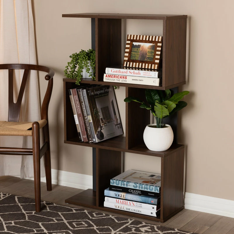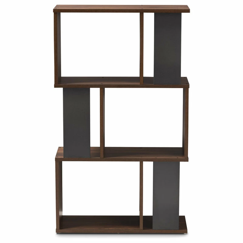 The countless possibilities for display and organization are easy to imagine with the Legende bookcase. The modern and contemporary-inspired design incorporates mid-century elements into its staggered, geometric layout. The Legende’s engineered wood frame is finished in a warm brown, contrasted with dark gray back panels of the more narrow display compartments. The bookcase features three layers of shelves, each with a wider open space, and a smaller edge compartment with back panels. This opens up the possibilities for storage solutions and creative decor display options. This charming and modern shelf will add a delightful energy to your livingroom, guest room, bedroom, or even a home or private office. Made in Malaysia, the Legende requires assembly.