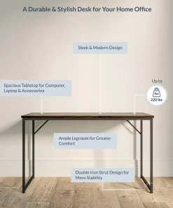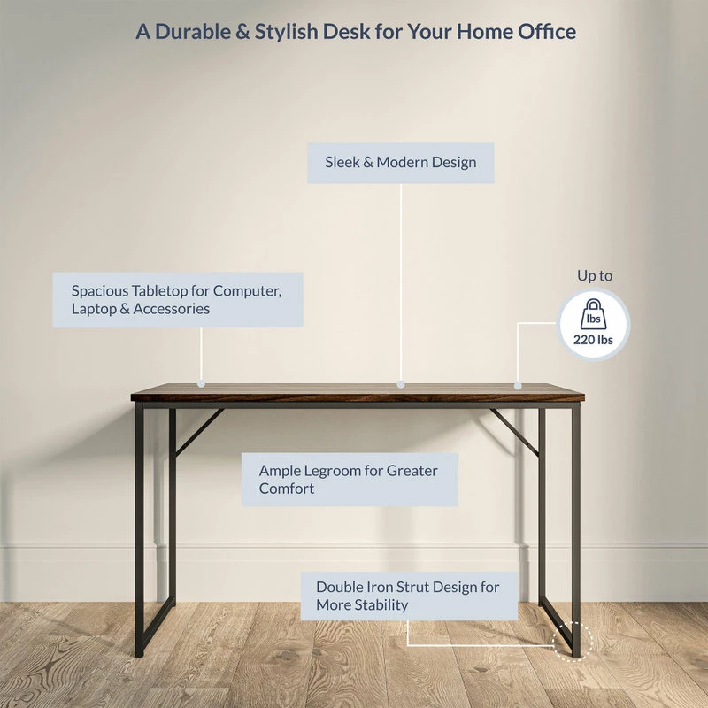 Moving to your new home, or looking to refresh your home office? BELLEZE Barton series computer desk, 47″ large environment particle board desktop supplies spacious space with higher real wood feeling and matt black power coating finish metal frame with extra steel bracket enhance stability and the maximum loading capacity up to 220 lbs, help you transform your office into an active, adaptable workspace.