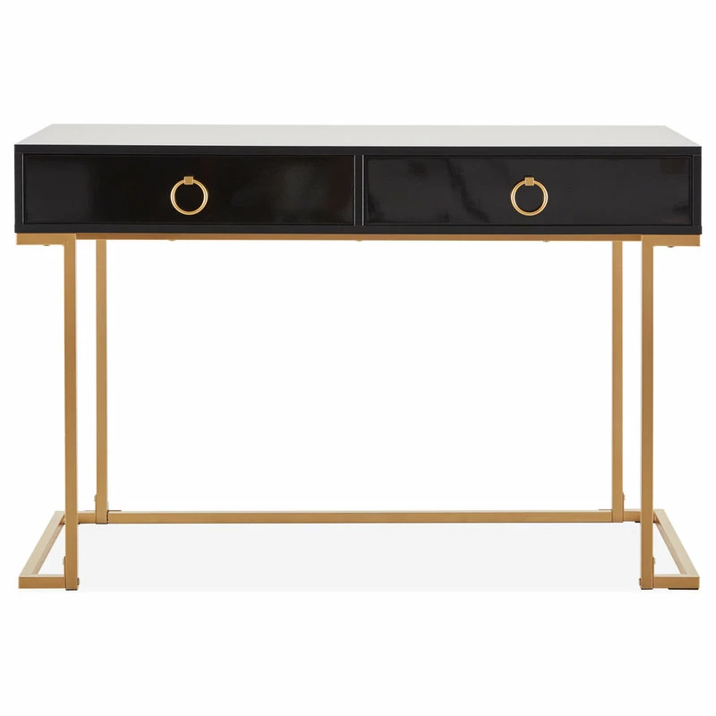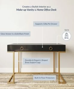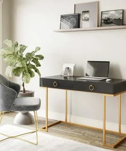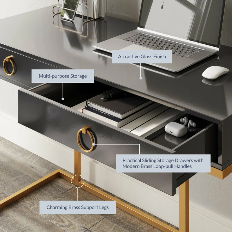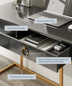 - SIMPLE YET STYLISH: Sleek white desk surface with golden metal legs, this computer desk can add a touch of luxury appearance for your room.