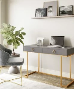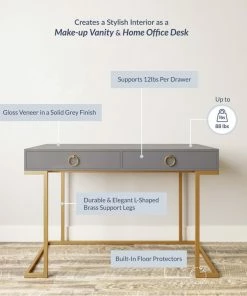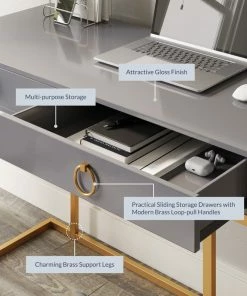 - SIMPLE YET STYLISH: Sleek white desk surface with golden metal legs, this computer desk can add a touch of luxury appearance for your room.
