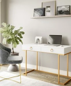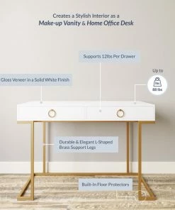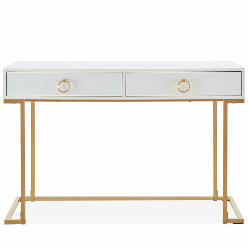 - SIMPLE YET STYLISH: Sleek white desk surface with golden metal legs, this computer desk can add a touch of luxury appearance for your room.