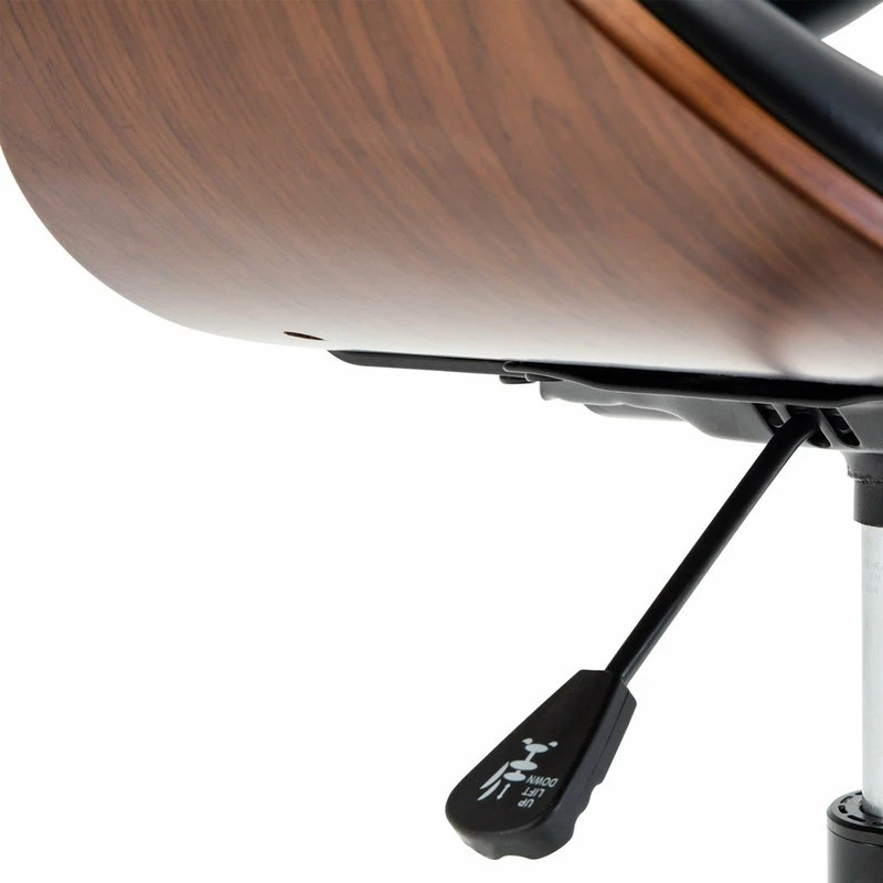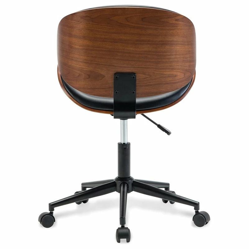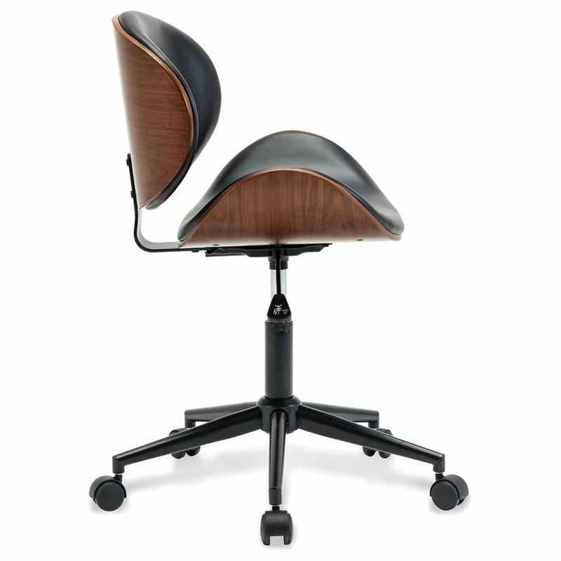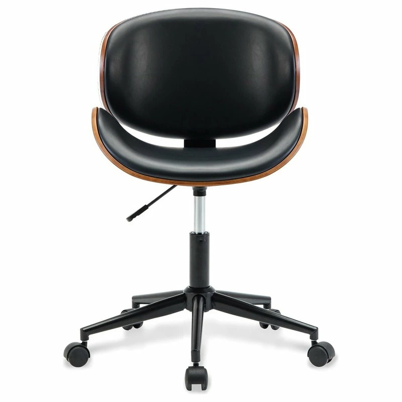Enjoy comfort and functionality in your office space with our Belleze desk chair. Featuring walnut bentwood frame and sturdy metal base, this office chair is upholstered with black bonded leather, offering great seating comfort. The adjustable seat height allows you to adapt the chair to any desks, while a 360-degree swivel seat and five casters provide convenient movement around your workplace.