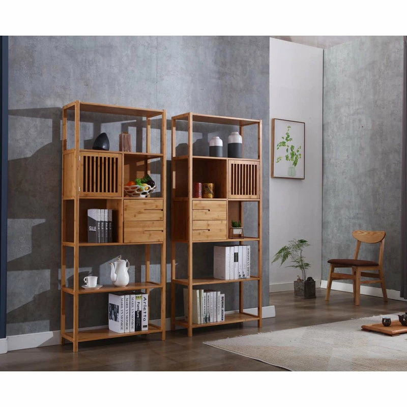Bring in the unique and new Boraam bookcase, the Selma Bookcase. It is constructed with bamboo and is available in two finishes; natural and cappuccino. The Selma Bookcase has three shelves for all your books and home decor, as well as a four cubbies in the center โ one cabinet, two drawers, and two open slots. It would be an excellent addition into your home or office.