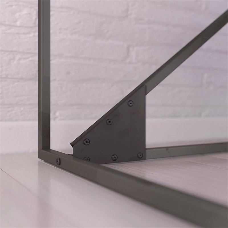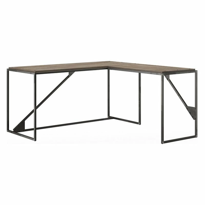 Unique reclaimed looks, industrial appeal and a sturdy space-saving design. The Bush Furniture Refinery 62W L Shaped Industrial Desk gives your home office, loft or creative space a weathered charm to match your rustic decor. The Industrial Steel frame and exposed bolts join a durable work surface finished in a distressed Rustic Gray to create an L Shaped Desk you’ll love to use and admire. Spread out with your laptop, projects, crafts or a good book and a cup of coffee with room to spare. Place the L Shaped Desk in a corner to conserve space or prominently display it in the center of a room. The 37W Industrial Desk Return attaches to the left or right side for your comfort. Display your rustic tastes with the 62 inch L Shaped Industrial Desk, backed by a 1 Year Warranty. Meets ANSI/SOHO furniture standards.