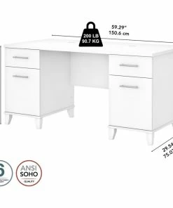Make the best use of your workspace with the stylish and practical Bush Furniture Somerset 60W Office Desk. An ideal choice for your home office, the extended surface provides plenty of room for you to spread out with your computer, paperwork and more while built-in wire management grommets keep cords and cables in order. Stay organized with two box drawers to house miscellaneous office supplies and two file drawers with smooth ball bearing slides for storing letter-sized documents. Transitional styling includes your choice of stylish Hansen Cherry, Mocha Cherry, Maple Cross, Ash Gray and Storm Gray finishes with tapered leg accents and contemporary metal hardware for an alluring appearance to match your current decor. This computer desk with drawers is tested to meet ANSI/SOHO quality standards for safety and performance and is backed by the Bush Furniture 6 Year Manufacturer’s Warranty. See the full Somerset Collection for coordinating items to complete your personal workspace with sophisticated furnishings that are built to last. American made with U.S. and imported parts.