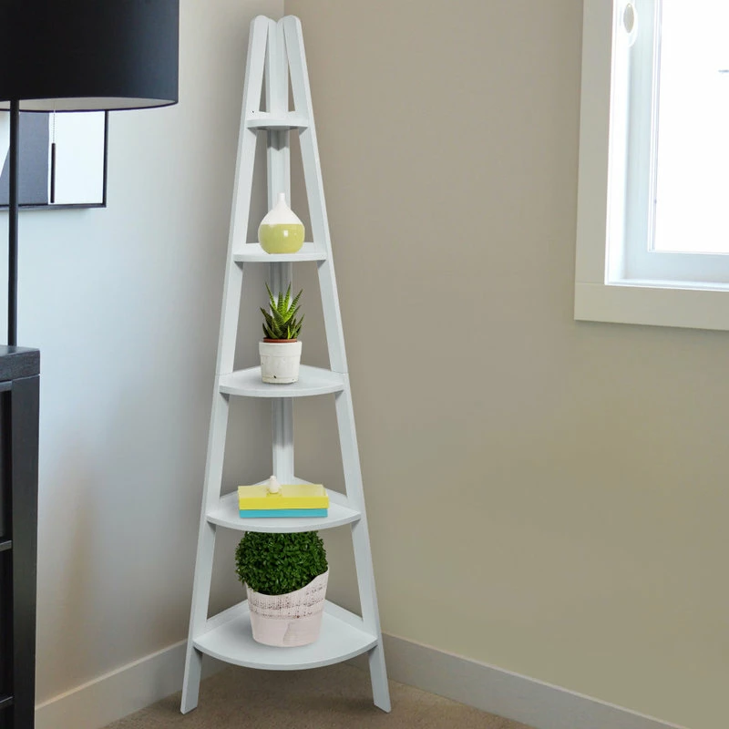 We’ve cornered the market on great bookcases! This 5-Shelf Ladder Style Corner Bookshelf gives you storage room in an area that tends to go to waste–the corner. Solid wood construction means lasting value. Complete your layout with a progressive piece that has classic features.