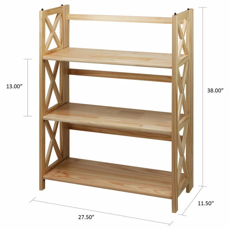 The Montego 3-Shelf Folding Bookcase is a perfect and sturdy 3 shelf folding bookcase. It provides all the storage space you need and is stackable. No tools required; Convenient folding design; Setup or put away in seconds