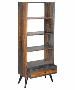 For your study, den, foyer or kitchen, this stunning Etagere will provide a beautiful way to display your treasures. Aglow in a rich Sierra Brown finish, the sensational Sheesham wood flows with exotic graining from the iron tapered legs to the half-shelf top, giving this open shelving bookcase a one-of-a-kind appeal. And, with the addition of the single drawer on the bottom, you have the added bonus of tucking away a few thing out of sight!