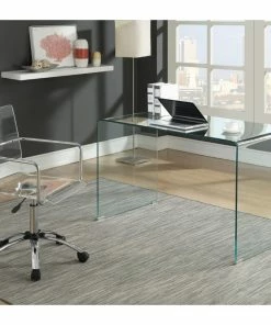 Combine modern design and minimalist construction for a writing desk that’s sure to please. It features a clear tempered bent glass as the table top and solid-piece legs/stand. Chromed steel floor protectors offer practicality and stability as well as a touch of lustrous panache. Table top is large enough to accommodate a widescreen monitor and table lamp. A perfect writing desk for writing with a city view or overlooking a countryside landscape.