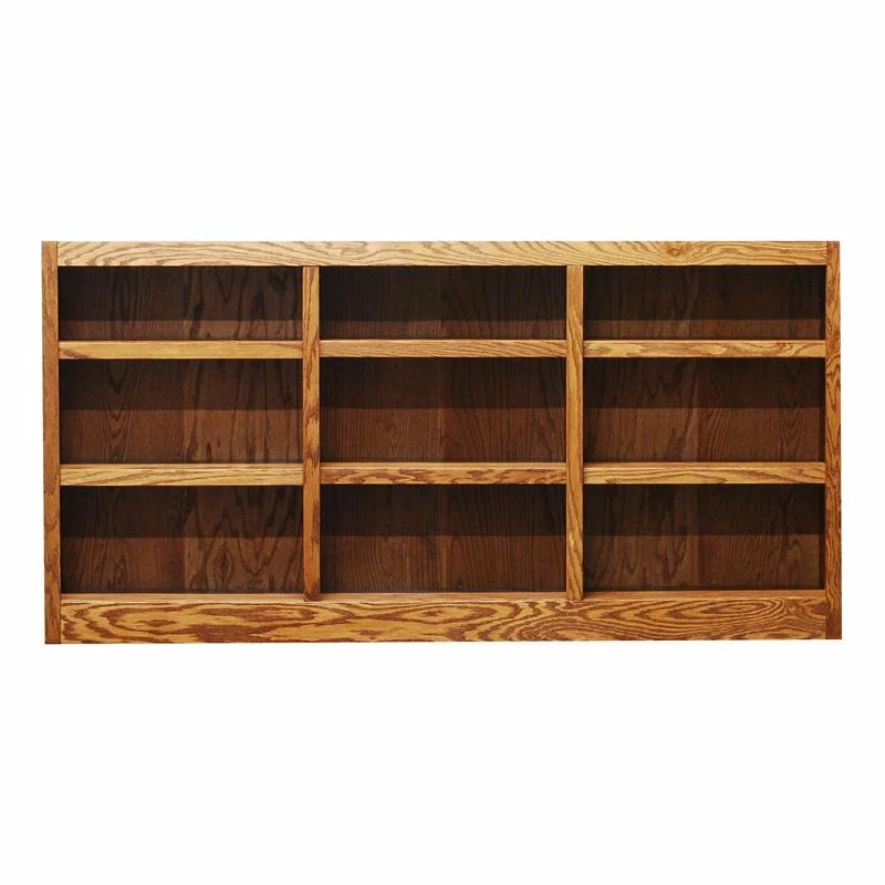 The Concepts in Wood 9 shelf triple wide Bookcase has a beautiful 10 step finish on wood veneer that really sets this bookshelf apart from the rest and utilizes an environmentally friendly zero VOC emissions finish process. This is a piece of furniture using solid wood trim pieces and wood veneer panels versus all the paper laminate varieties out there. Very durable with 70lb. weight capacity per shelf. 6 adjustable shelves allow you to customize the storage space to accommodate a variety of book sizes and 3 fixed shelves provide structural reinforcement. A dowel and cam lock assembly design ensures a strong durable bookcase. Wood elements are sourced in the USA and assembled in Mexico. This versatile storage bookcase is ideal for home or office use, laundry, bedroom, kitchen, garage or any other room. Ready for assembly.