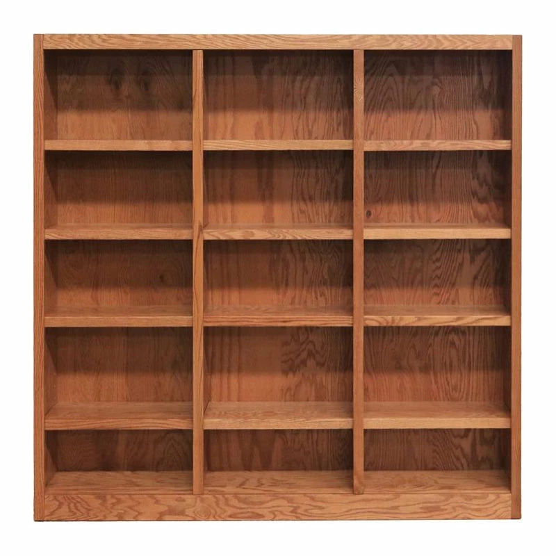The Concepts in Wood 15 shelf triple wide Bookcase has a beautiful 10 step finish on wood veneer that really sets this bookshelf apart from the rest and utilizes an environmentally friendly zero VOC emissions finish process. This is a piece of furniture using solid wood trim pieces and wood veneer panels versus all the paper laminate varieties out there. Very durable with 70lb. weight capacity per shelf. 12 adjustable shelves allow you to customize the storage space to accommodate a variety of book sizes and 3 fixed shelves provide structural reinforcement. A dowel and cam lock assembly design ensures a strong durable bookcase. Wood elements are sourced in the USA and assembled in Mexico. This versatile storage bookcase is ideal for home or office use, laundry, bedroom, kitchen, garage or any other room. Ready for assembly.