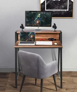 Coming with spacious workspace, this computer table allows you to work, study and play game comfortably. Besides, the ergonomic monitor stand protects your spine from sedentary. And this multifunctional desk can be used as computer desk, writing desk or makeup vanity console table according to your needs. Additionally, the powder coated iron frame is anti-rust and stable to hold up to 110 lbs. And the desktop is waterproof and scratch-resistant for long time use and easy maintenance.