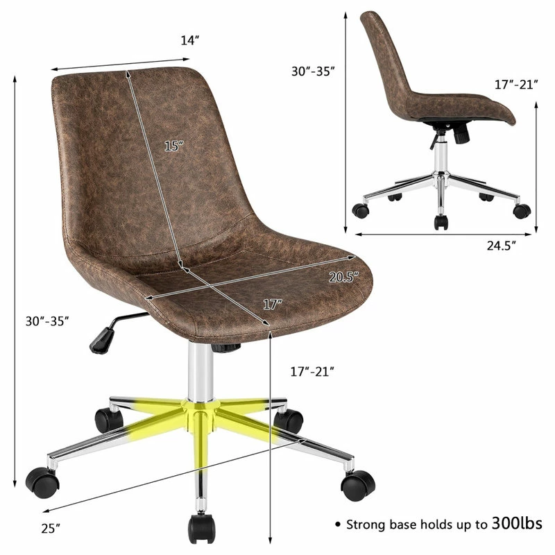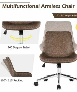 Featured with high quality PU and high-elastic sponge, our side chair is durable and cozy enough for your daily use. The swivel chair with heavy-duty casters is compatible with various types of floors, which ensures smooth movement without causing scratches. The height-adjustable and rocking design makes you adjust the chair as needed to fit all your needs. No limitation of arms, it helps to saves up available living space. Meanwhile, its modern appearance is suitable for various decoration styles. Do not hesitate to add it to your cart!