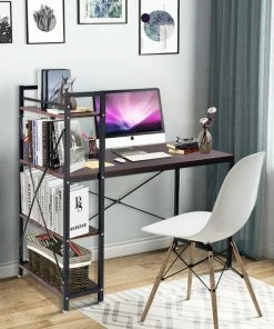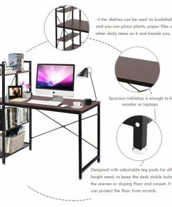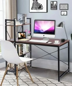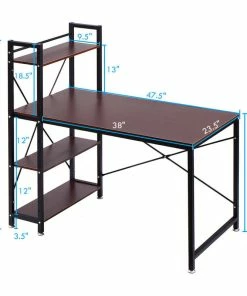 With compact design and 4-tier equipped shelf, this computer desk creates super large storage with less space occupying. Combined with two-side X-shape frame, there will be no worry about the table stability. As the material we use is of P2 grade, you may rest assured about your health for there is less harmful substance. The height of table leg is adjustable, which ensure greater practicality to use on all kinds of ground.