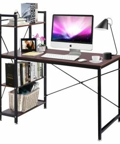 With compact design and 4-tier equipped shelf, this computer desk creates super large storage with less space occupying. Combined with two-side X-shape frame, there will be no worry about the table stability. As the material we use is of P2 grade, you may rest assured about your health for there is less harmful substance. The height of table leg is adjustable, which ensure greater practicality to use on all kinds of ground.
