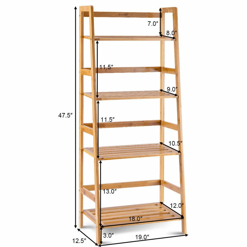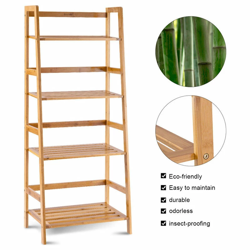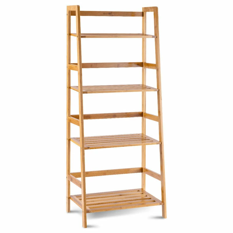 This 4 tier bamboo material shelf adds freshness and aesthetic style to your living space. The solid and stable shelf provides large storage space for your books or other displays. The painting is smooth and easy to maintain clean. The perfectly spaced bars avoid the books to fall in the gap. The bars between each shelf offers extra support for your books. It also can be as a display shelf for kitchen or bathroom. This shelf is an ideal home furniture for you