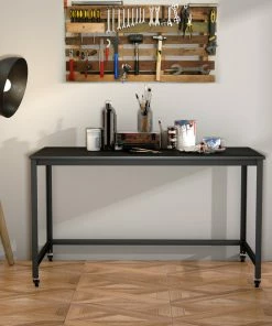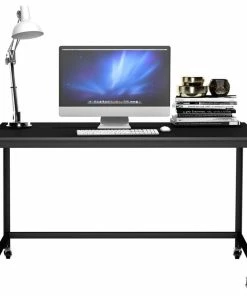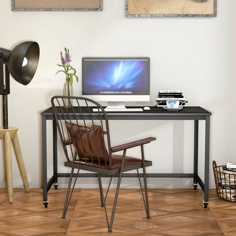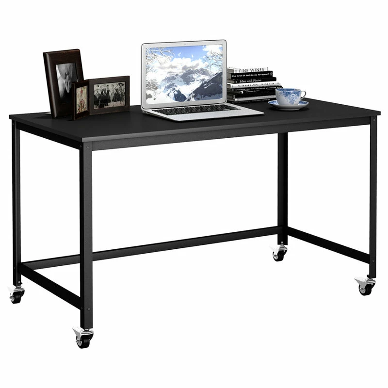 This simplistic style computer desk is a perfect furniture to fit your home or office. With its large full-size workstation, this desk provides you a unmatched convenience for your work. Featuring high-quality Particleboard and powder-coated steel pipe, this computer desk is sturdy and anti-corrosion and provides years of sturdy and reliable use. Moreover, it has 4 universal wheels, which makes it easy to move. All of the wheels are lockable.