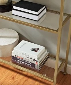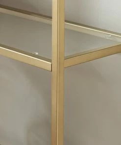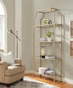 Provide your library the glamorous home it deserves with the Aimee Glass Etagere. A visually stunning piece of furniture this gold-finished piece offers four glass shelves of space that’s ideal for books and decor. For a little extra flair in your living space, the Aimee is a fine example of chic design and functional furnishing.