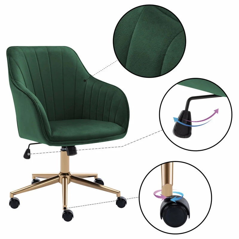 Stay sedentary? Need some support? Your back will thank you for the supportive comfort our Sloped Arms Velvet Computer Desk Chair provides. Distinctive vertical tufts on the skin-friendly velvet upholstery give our task chair the pride of place in your working area, while the easy-rolling casters make moving around a breeze to further double your efficiency. A must-have addition to boost your work.