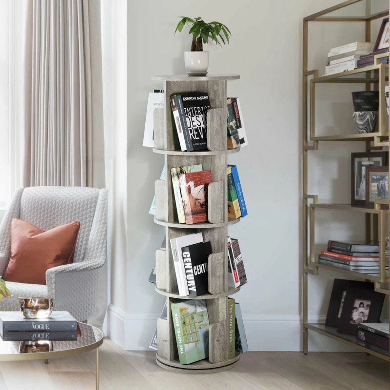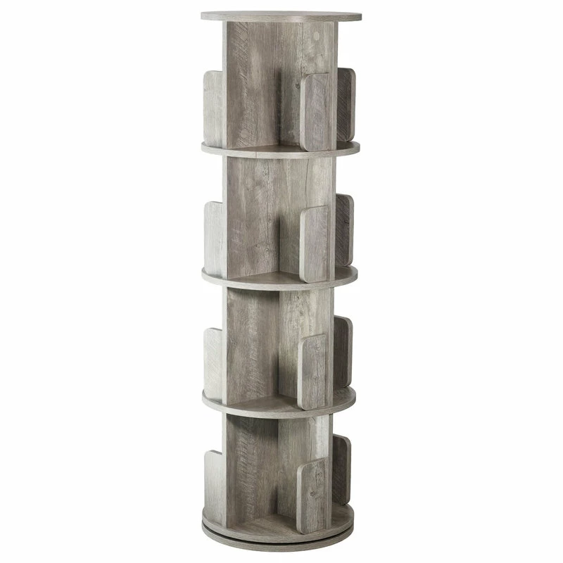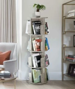 Its clean-lined frame is made from engineered wood in your choice of neutral finish. Four open shelf spaces in same heights and widths that provide the perfect place for your favorite books, accent pieces, and framed photos. It can also be arranged in a horizontal or vertical orientation depending on your taste and style. Best of all, this bookcase comes a 360 degree rotating for convenient using.