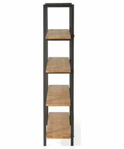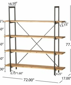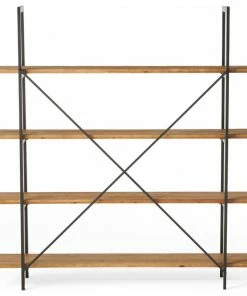 Display your cherished collections and favorite photos proudly and boldly with our impressive etagere bookcase. Featuring an industrial design, our lovely bookcase uses a metal frame for an exposed yet sleek look. The metal also creates a highly durable structure that is fortified with an X-frame stretcher to ensure the best stability for your home. Finished with rich firwood, this piece offers four delightful shelves that provide ample space for display and organization, allowing you to easily personalize your home.