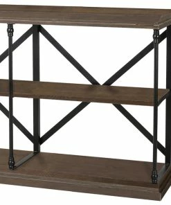 Whether you are in need of a console table for your foyer or a display shelf for your living room, our etagere bookcase will have you covered. Featuring an industrial design, our bookcase uses a metal frame for an exposed yet sleek look. The metal also creates a highly durable structure that is fortified with an X-frame stretcher to ensure the best stability for your home. Finished with natural pine and faux wood, this piece offers five delightful shelves that provide ample space for display and organization, allowing you to easily personalize your home.