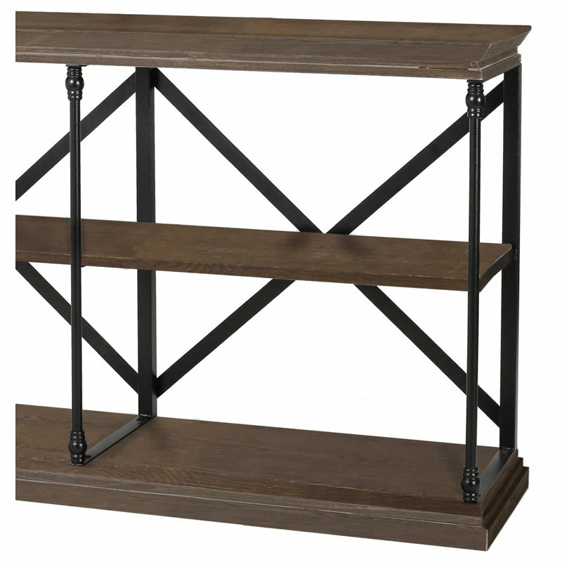 IRON FRAME: The sturdy construction of this iron frame ensures that this bookshelf will hold up under heavy use. This is reinforced with an X-frame iron stretcher on the back of the bookshelf.
