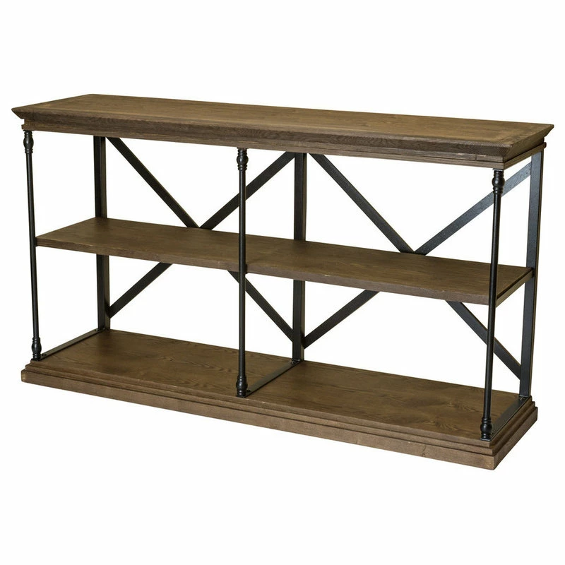 INDUSTRIAL DESIGN: Our bookcase incorporates a sleek metal frame into its construction to create an understated industrial design. With a combination of iron and smooth wood shelves, this bookcase offers a raw, unfinished look to your home.