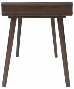 This mid century desk is the perfect addition to any home office or student room. This wooden desk features a large drawer in the center of the desk, ideal for storing anything from writing tools to chargers. Large enough to fit a computer and papers, this desk is sure to be everything you are looking to add to your home office.