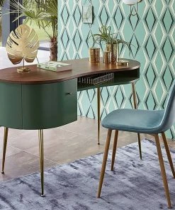 This mid century desk is the perfect addition to any home office or student room. This wooden desk features a large drawer in the center of the desk, ideal for storing anything from writing tools to chargers. Large enough to fit a computer and papers, this desk is sure to be everything you are looking to add to your home office.