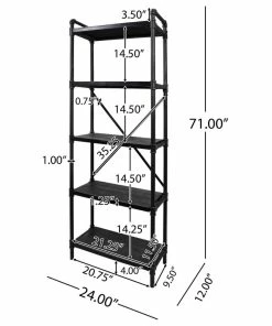 DIMENSIONS: Choose an accessory that is the perfect size for you and your furniture. This bookcase is 24.00″W x 12.00″D x 71.00″H with 14.6″between each shelf. You will love how much your space can transform with the simple addition of this bookcase.