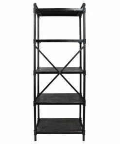 IRON FRAME: The sturdy construction of this iron frame ensures that this bookshelf will hold up under heavy use. This is reinforced with an X-frame iron stretcher on the back of the bookshelf.