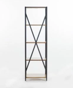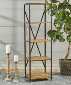 Eliminate the clutter in your living room with an etagere bookcase that offers provides both stylish vibes and organizational space for you to enjoy. Featuring an industrial design, our bookcase uses a metal frame for an exposed yet sleek look. The metal also creates a highly durable structure that is fortified with an X-frame stretcher to ensure the best stability for your home. Finished with firwood, this piece offers four delightful shelves that provide ample space for display and organization, allowing you to easily personalize your home.