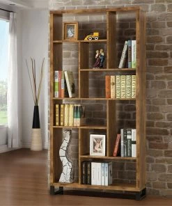 - Modern Bookcase in Antique Nutmeg and BlackA classic look for classic spaces. Show off volumes of books, artistic decor, and potted greenery in a traditional space. This bookcase presents a beautiful and functional addition to a living room or home office. Square and rectangular sections accommodate varying heights. Finished in antique nutmeg and black, it offers a versatile palette that blends with a variety of settings.