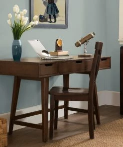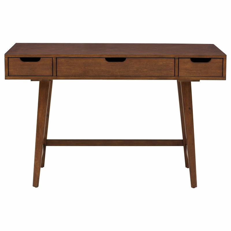 Combining practicality and subtle retro inspiration, the Hillary Mid Century Modern Writing Desk creates the perfect setting for a productive day. Sitting on tapered legs, the desk comes with three drawers for easy storage of essentials and is topped off with a light walnut finish. Whether in a contemporary or traditional space, the writing desk is an easy piece to add to an existing decor.