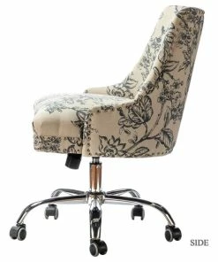 A well-edited workspace calls for a carefully-curated chair – and this design is it! It offers supreme comfort thanks to its ergonomic shape and features a durable frame with soft filling. The bright and colorful finish will blend with most color palettes. Its classic design along with its elegant pattern and gleaming nailhead trim makes this chair a must-have in your home office. Durable metal five-pronged base and high performance all directional wheels allow smooth movement across carpeting. This chic design is height-adjustable to personally tailor your space.