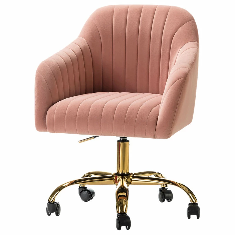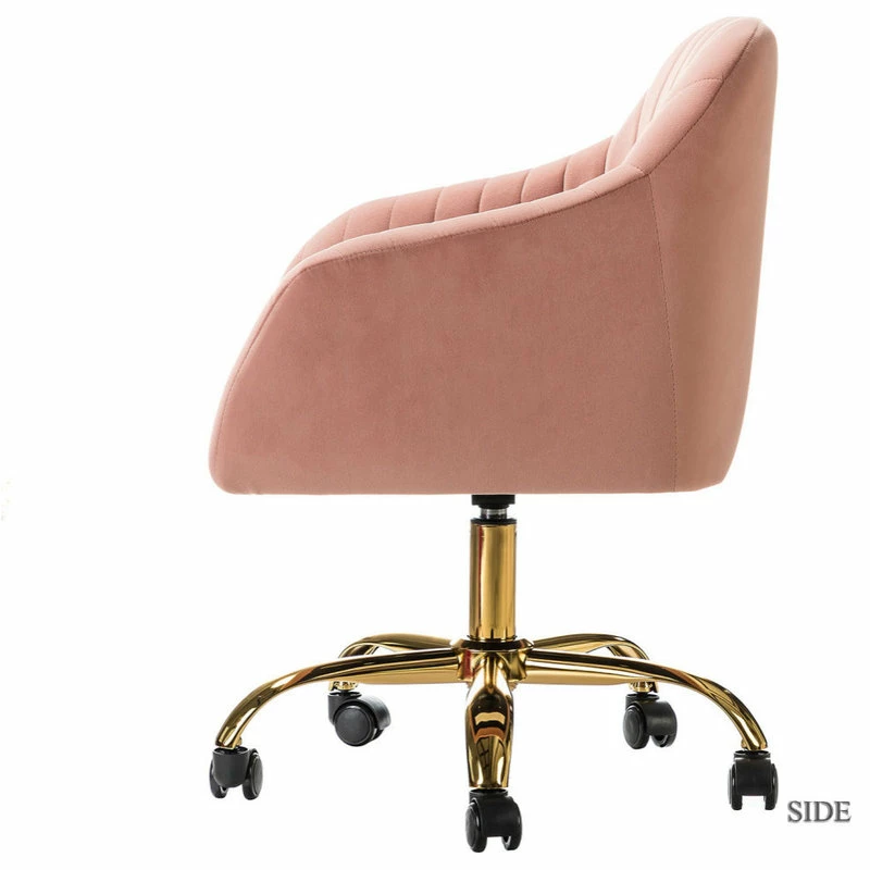 This Modern swivel office chair is a wonderful addition to any office or home office with its variety vibrant colors- velvet fabric upholstery that blends with any design taste. Featuring extra plush seating with a stylish lightly tufted seat back and very attractive color of velvet fabric. This chair will have you feeling as if you are sitting on clouds. This chair will become the most comfortable chair in your home and office. Down below, it includes five casters for easy transport. Includes a pneumatic lever for adjusting the height. Whether used in the home office or workplace cubicle,this office chair is a must-have for anyone who works long hours from a sitting position. Offering the appeal of mid-century inspired decor to your abode.