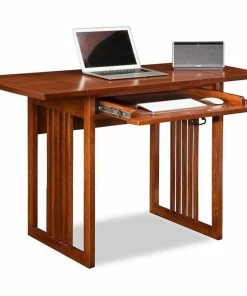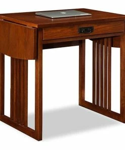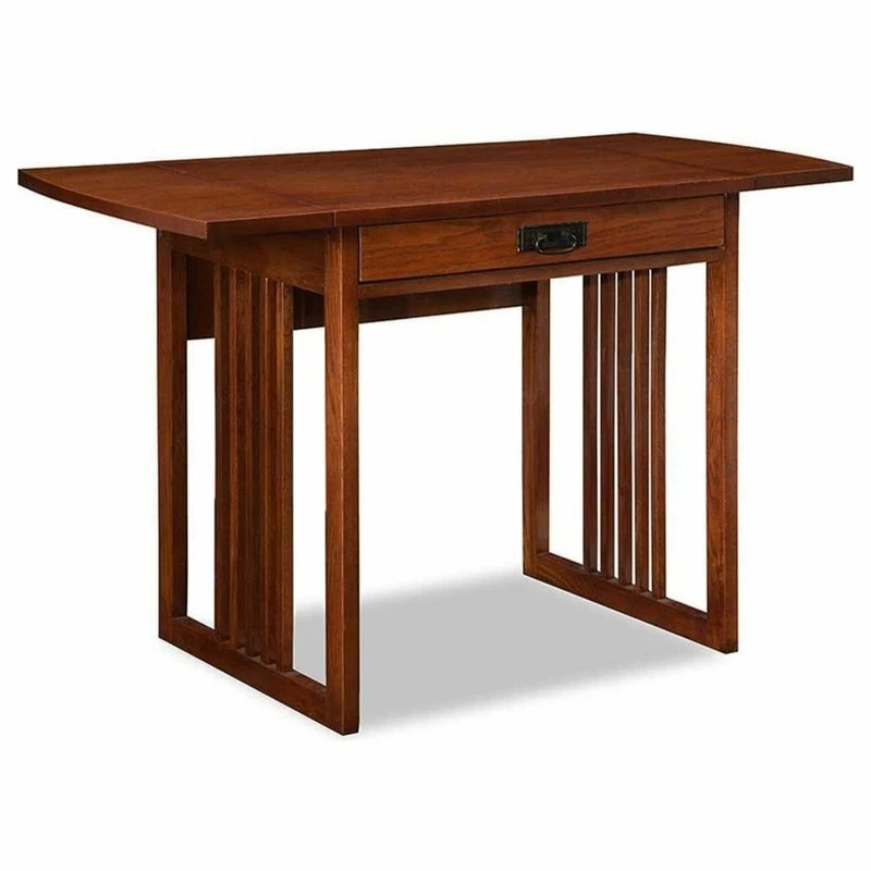 Perfect for laptops or to hide away papers or a desktop keyboard, this delicately scaled chocolate desk offers abundant organization assistance in just a tiny space. The drop down front presents the keyboard at a comfortable work height while full extension drawer guides offer the full depth of the drawer as useable space. Drop leaves are at the ready to extend for extra work surface when you need it.