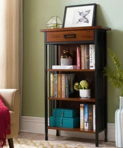 Ironcraft blends the familiar with something fresh and new–rich, wood tones over matte black steel bases. Traditional mission slats echoed in a contemporary, two-piece custom drawer pull. Solid wood drawer boxes open completely on ball-bearing roller guides for easy use.