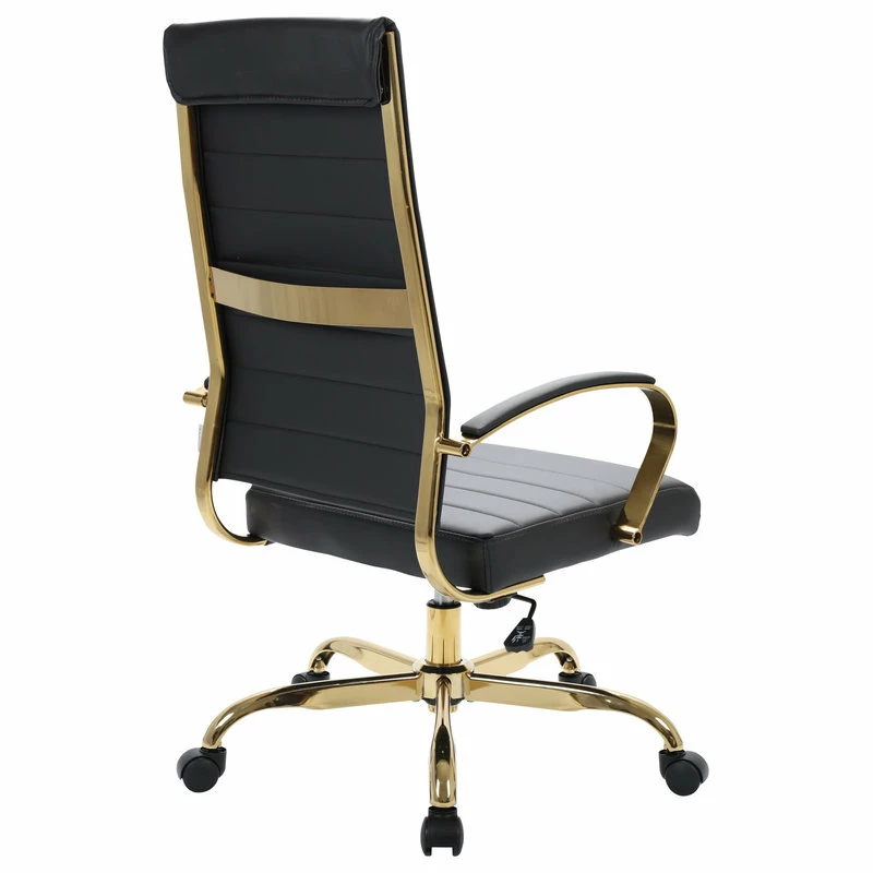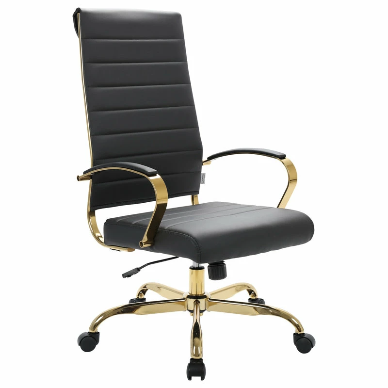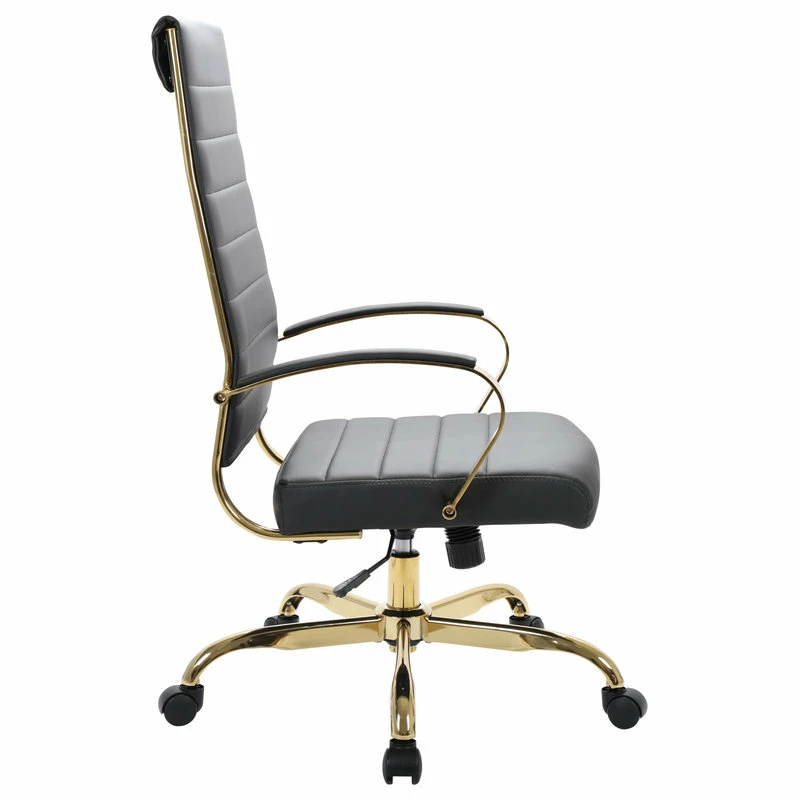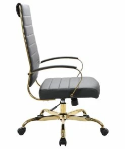 Embrace full luxury with this exceptional Benmar office chair built to provide optimal comfort and a sophisticated aesthetic. Make a statement with an adjustable mid-century style chair that completes the contemporary office space. Inspired by a classic mid-century design, this version shows off a bold and sophisticated presence. High back office chairs have backs extending to the upper back for greater support. With a pneumatic gas lift to adjust the seat height and 360-degree swivel, this chair delivers the versatility and functionality required by the modern working environment. A tension knob and tilt locking lever complement a catered five-point base for easy mobility.