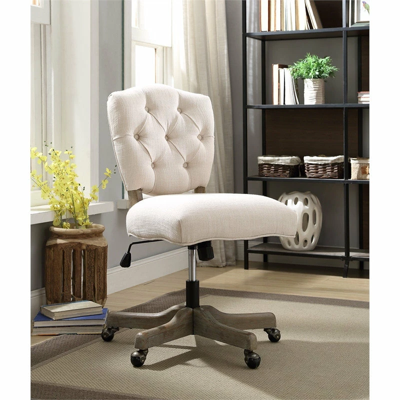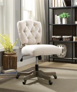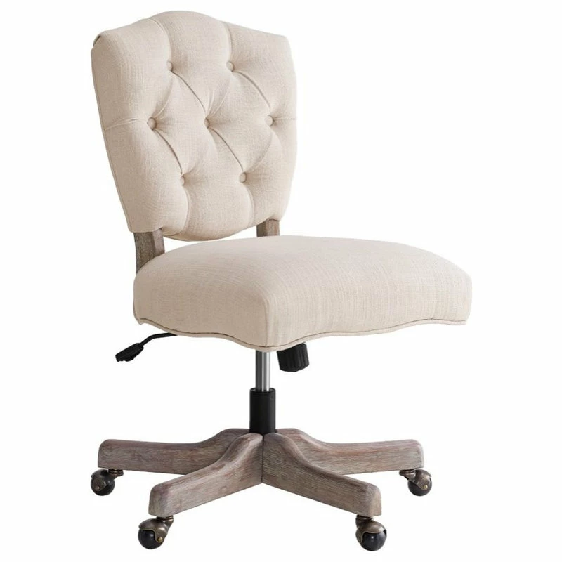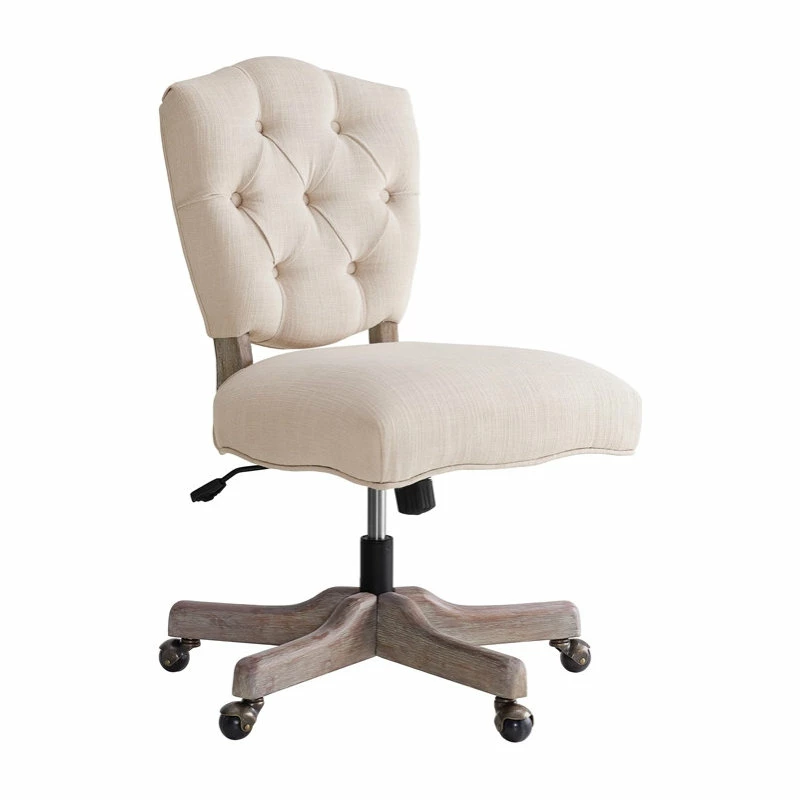 The Kelsey Office Chair delivers a traditional yet stylish element to any workspace. The detailed tufted back and padded natural seat bring out the chair’s timeless design, while a gray wash base accents the chair and provides a rustic feel. The adjustable height allows the chair to work with any style desk, and durable casters help you move about your space with ease. Perfect for any home workspace or office.