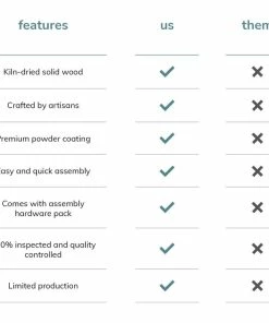 - Made of kiln-dried solid mango wood and powder-coated metal.
