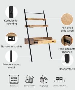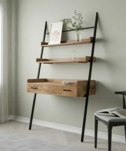 Clean lines, solid mango wood, powder-coated metal, plenty of storage- this ladder desk is here to elevate your working space and how! Its mid-century silhouette offers two open storage shelves, a desktop, and a handy drawer to tuck away your clutter. Want more? It’s made by skilled artisans, so it has that handcrafted quality we love! Catching up on those emails just got super stylish!