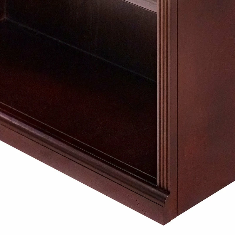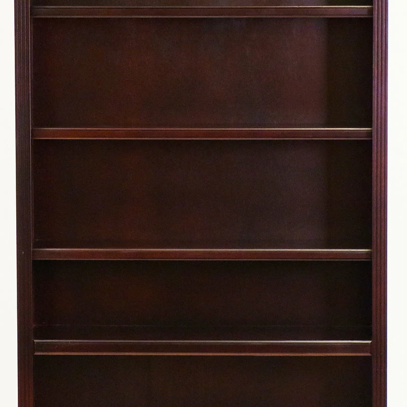 Huntington Club is a transitional furniture design with a vibrant cherry finish on hardwood solids and veneers. Vertical fluting, dentil molding and light distressing add character and aesthetic appeal. Huntington Club is a great addition to any home and will surely last for generations to come. The seven shelf wood bookcase has two fixed shelves for increased stability, five adjustable shelves, a semi-finished back and arrives fully assembled.